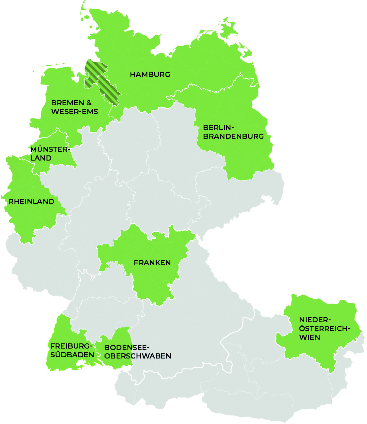 Die erste Regionalwert AG wurde 2006 im Raum Freiburg gegründet, initiiert von Gärtnermeister und Bio-Landwirt Christian Hiß. Von Freiburg aus interessierten sich schnell Menschen anderer Regionen für die Idee. So wurde die Regionalwert AG Hamburg, die Regionalwert AG Rheinland, Regionalwert AG Berlin-Brandenburg, Regionalwert AG Franken und dann 2021 in schneller Folge Bodensee, Niederösterreich -Wien, Münsterland und als jüngste AG unsere für die Region Bremen & Weser-Ems gegründet. Jede Region steht für sich selber und im Verbund aller Regionalwert AGs sind wir darüber hinaus gemeinsam stark.