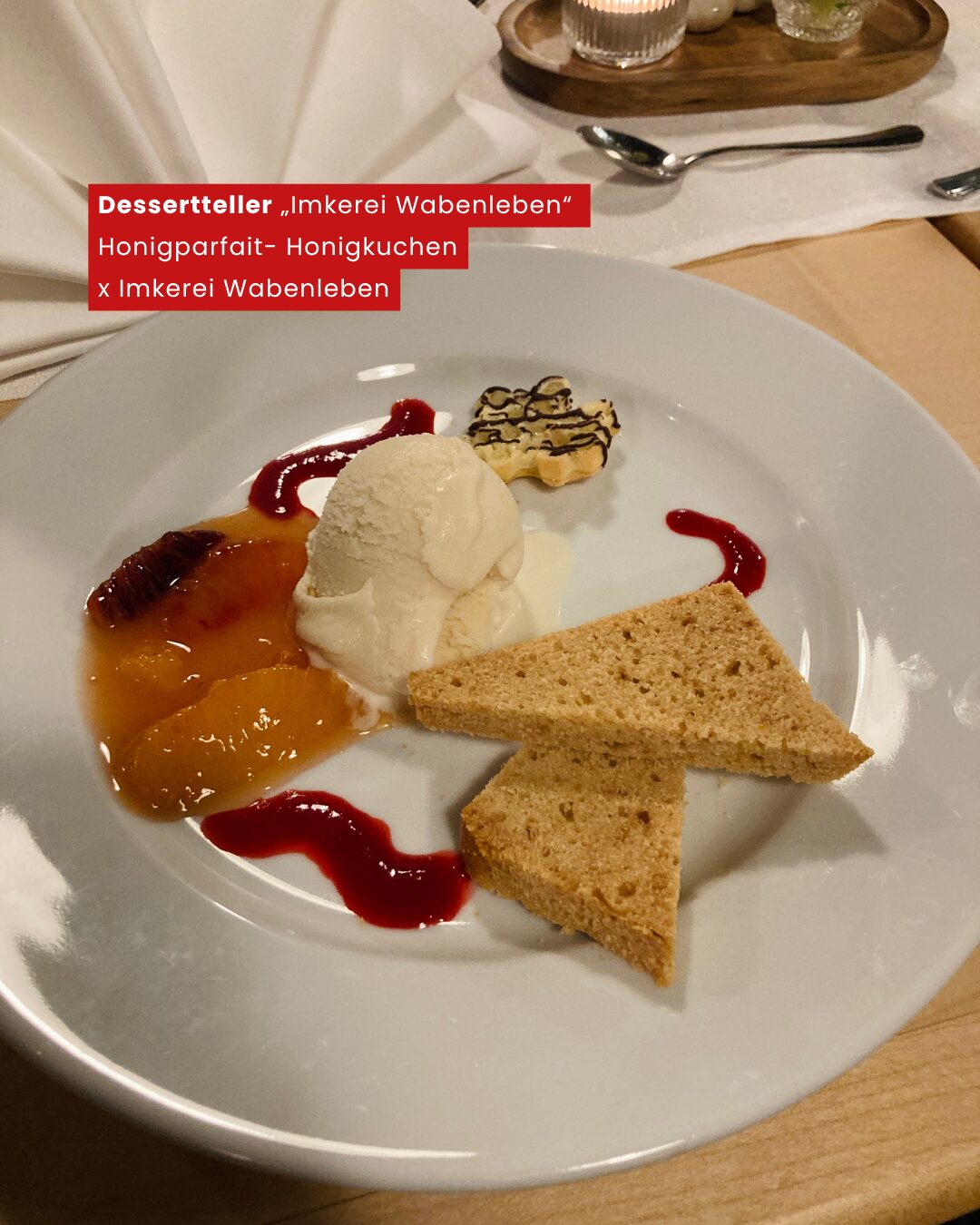 Zum Dessert schwärmte Stefanie Wolters vom Honig unses Partners Imkerei Wabenleben (zurecht!). Selbst der eigentliche „Honig-Muffel“ Dirk war begeistert. Das Imkerei Duo Jakob Fuglsang und Lea Lindner berichteten den Gästen von ihrem spannenden Imkerei Alltag. Die Gäste waren so fasziniert, dass wir eine angeregte Fragerunde tatsächlich abkürzen mussten, damit das Eis vom Dessert nicht schmilzt. Aber eins müssen wir teilen: Die Imkerei ist regelmäßig mit ihren Bienen auf Tour! Bei der sogenannten Wanderimkerei werden die fleißigen Bienenvölker an unterschiedliche Orte transportiert und können so sortenreichen Honig produzieren. Lenas und Jakobs Honig könnt ihr übrigens hier direkt online bestellen!